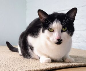 Geoffrey gets his tuxedo markings from his mother, Genevieve. Geoffrey loves to be brushed, and he'd love a sponsor who would visit him!